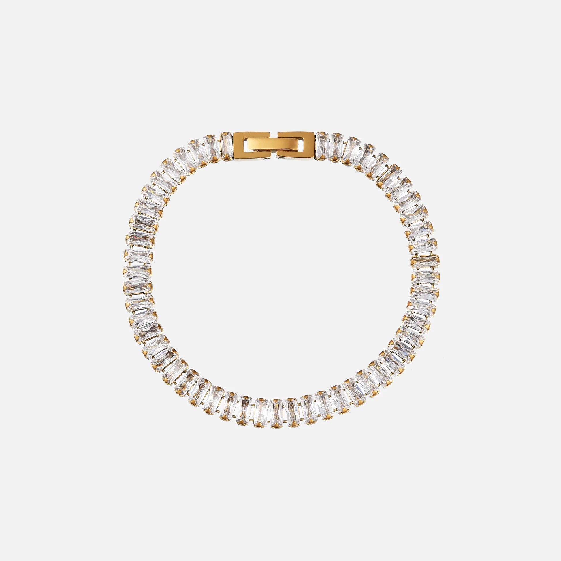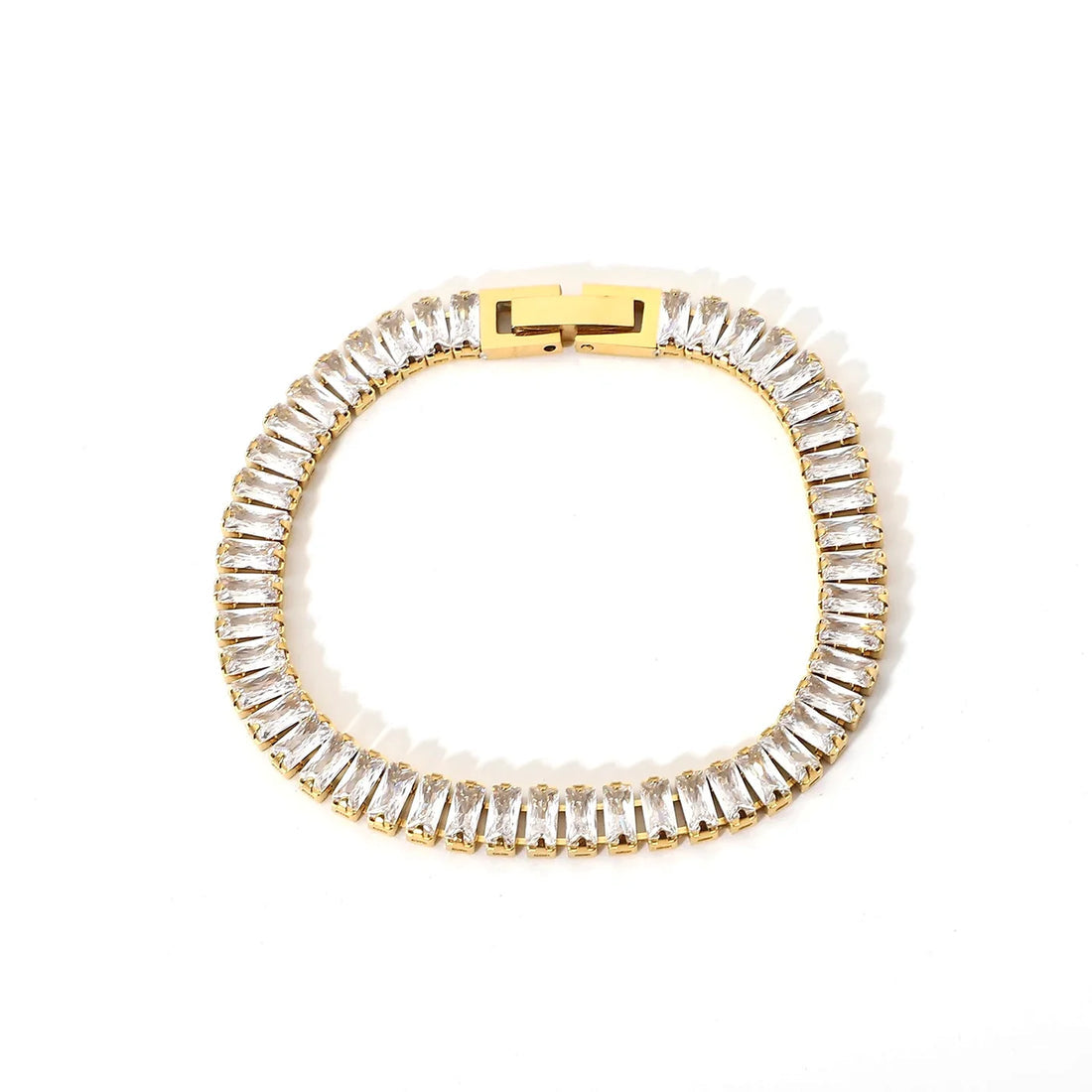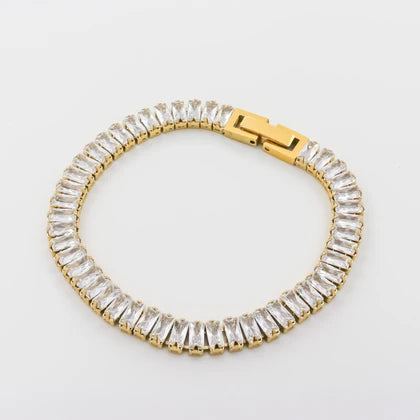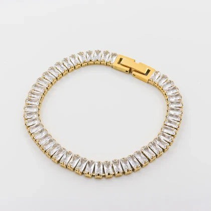 Elevate your style with our Amour tennis bracelet, a perfect blend of elegance and minimalism. Crafted from 18K gold-plated stainless steel, this piece is designed to be tarnish-resistant, waterproof, and hypoallergenic, ensuring lasting beauty and comfort. Whether you're dressing up for a special occasion or adding a subtle touch of sophistication to your everyday look,Amour tennis bracelet is a timeless essential that complements any outfit effortlessly.