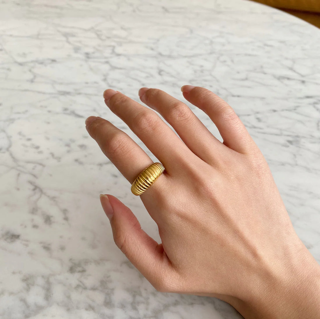 Elevate your style with our Bonnie ring, a perfect blend of elegance and minimalism. Crafted from 18K gold-plated stainless steel, this piece is designed to be tarnish-resistant, waterproof, and hypoallergenic, ensuring lasting beauty and comfort. Whether you're dressing up for a special occasion or adding a subtle touch of sophistication to your everyday look,Bonnie ring is a timeless essential that complements any outfit effortlessly.