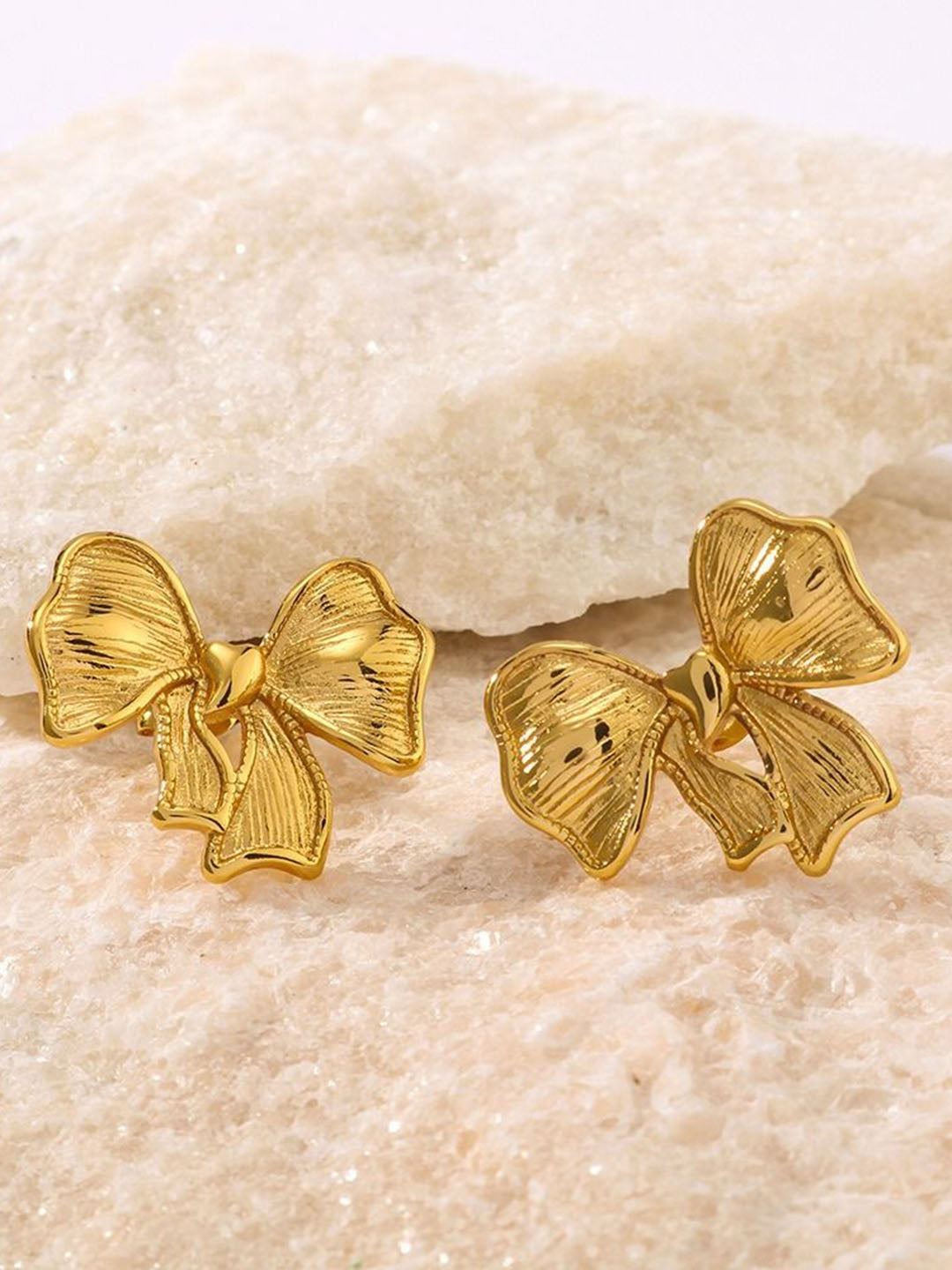 Elevate your style with our Bow post Earrings, a perfect blend of elegance and minimalism. Crafted from 18K gold-plated stainless steel, this piece is designed to be tarnish-resistant, waterproof, and hypoallergenic, ensuring lasting beauty and comfort. Whether you're dressing up for a special occasion or adding a subtle touch of sophistication to your everyday look,Bow post Earrings is a timeless essential that complements any outfit effortlessly.