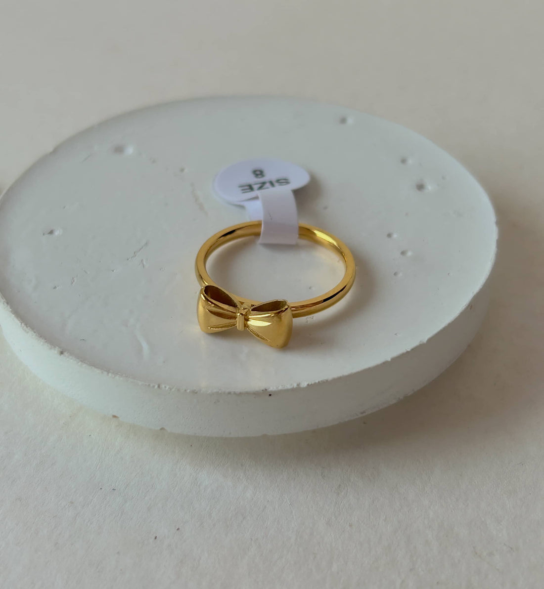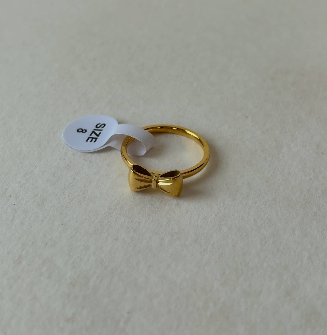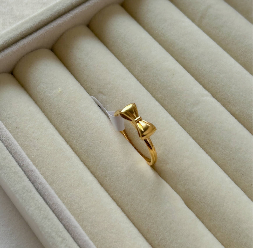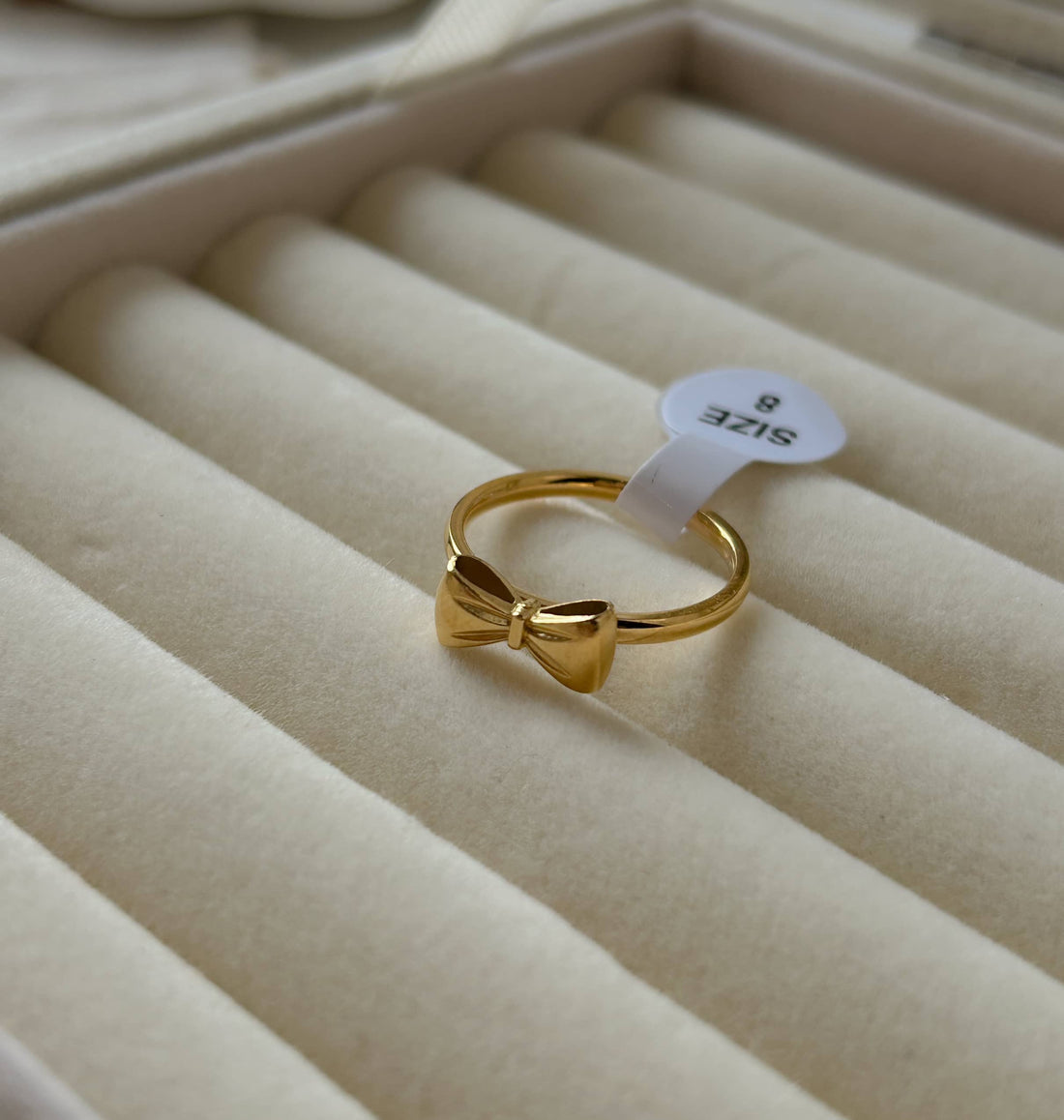 Elevate your style with our Bow Ring, a perfect blend of elegance and minimalism. Crafted from 18K gold-plated stainless steel, this piece is designed to be tarnish-resistant, waterproof, and hypoallergenic, ensuring lasting beauty and comfort. Whether you're dressing up for a special occasion or adding a subtle touch of sophistication to your everyday look,Bow Ring is a timeless essential that complements any outfit effortlessly.
