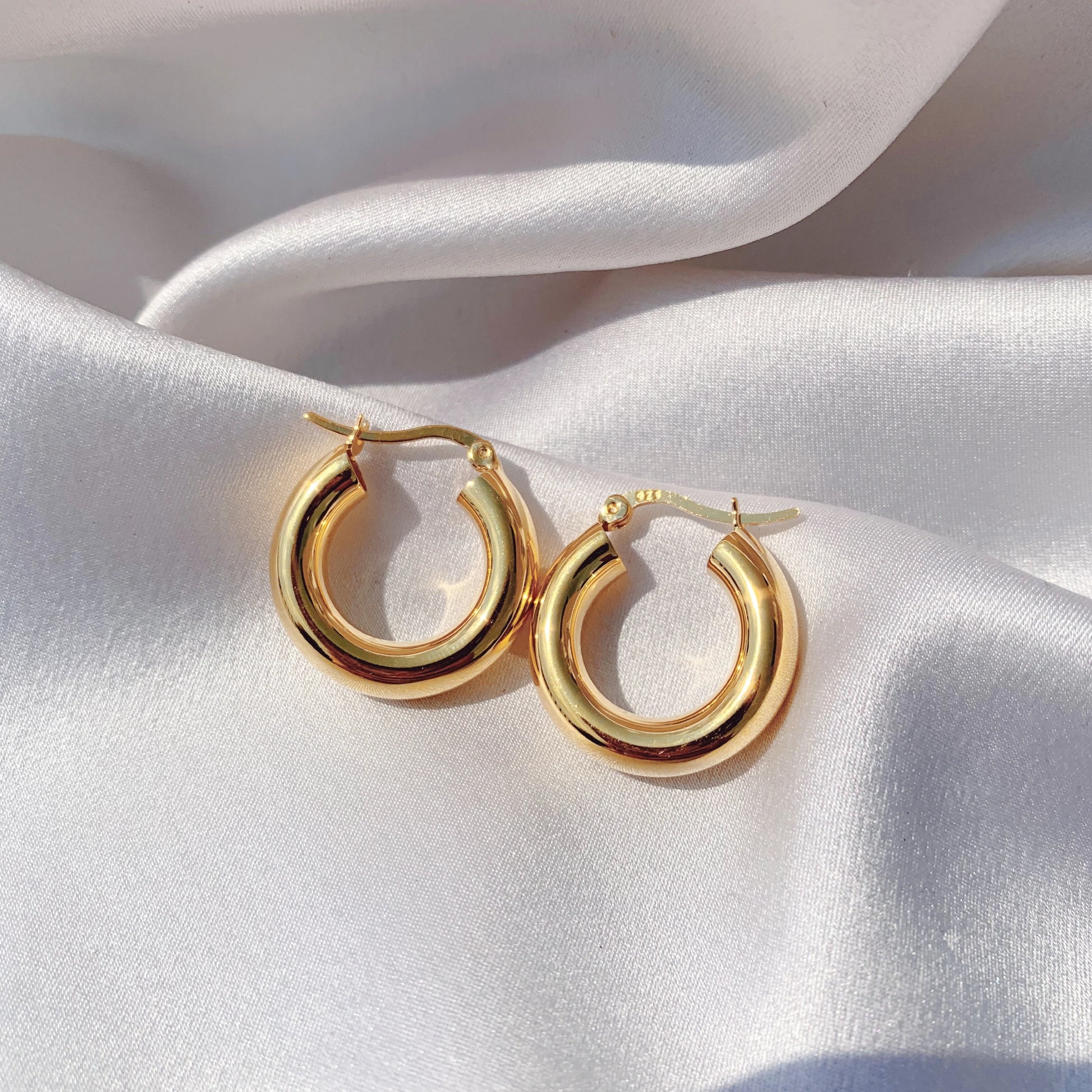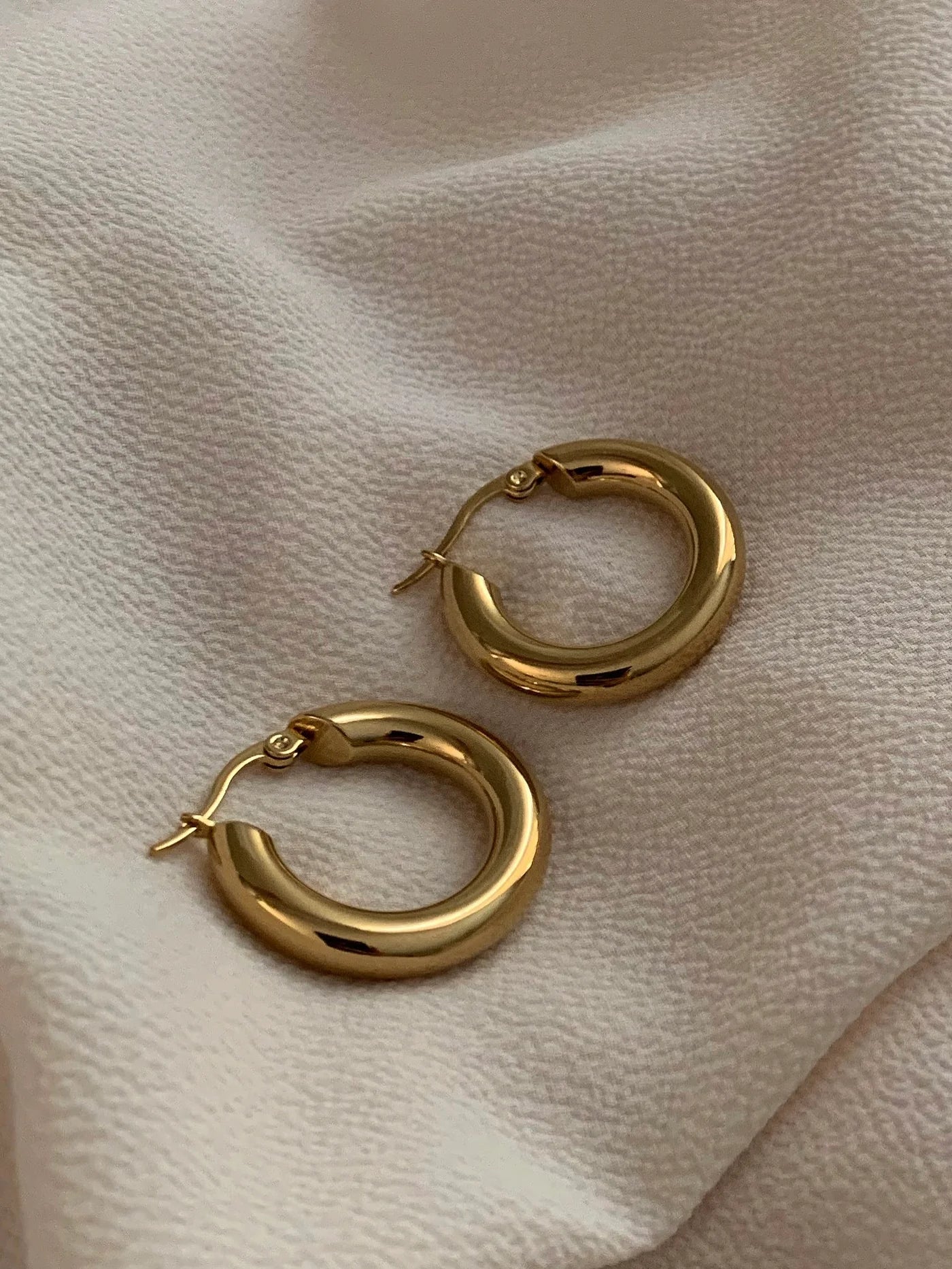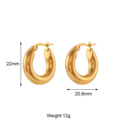 Elevate your style with our Classic Mini Gold Hoops, a perfect blend of elegance and minimalism. Crafted from 18K gold-plated stainless steel, this piece is designed to be tarnish-resistant, waterproof, and hypoallergenic, ensuring lasting beauty and comfort. Whether you're dressing up for a special occasion or adding a subtle touch of sophistication to your everyday look,Classic Mini Gold Hoops is a timeless essential that complements any outfit effortlessly.