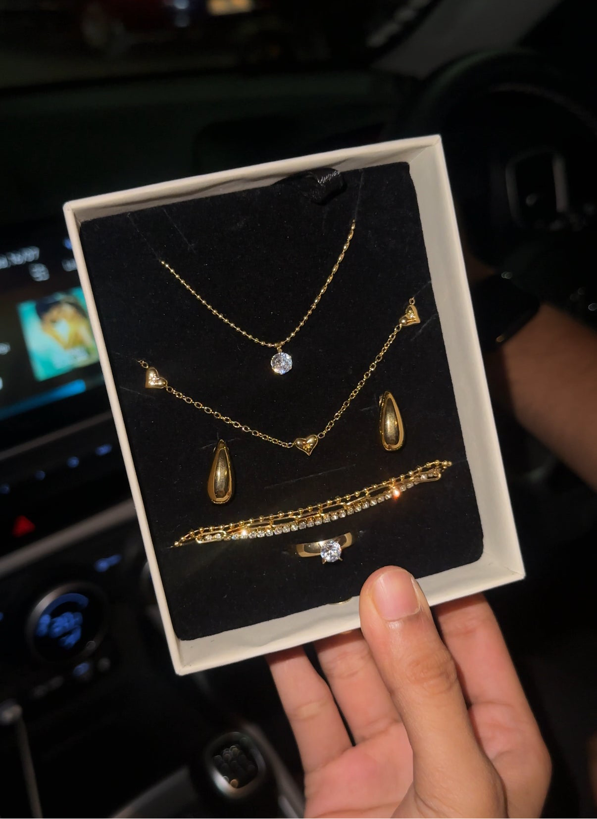 Elevate your style with our Forever Her Faves, a perfect blend of elegance and minimalism. Crafted from 18K gold-plated stainless steel, this piece is designed to be tarnish-resistant, waterproof, and hypoallergenic, ensuring lasting beauty and comfort. Whether you're dressing up for a special occasion or adding a subtle touch of sophistication to your everyday look,Forever Her Faves is a timeless essential that complements any outfit effortlessly.