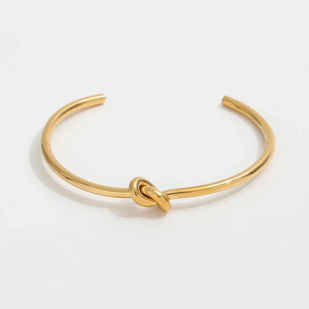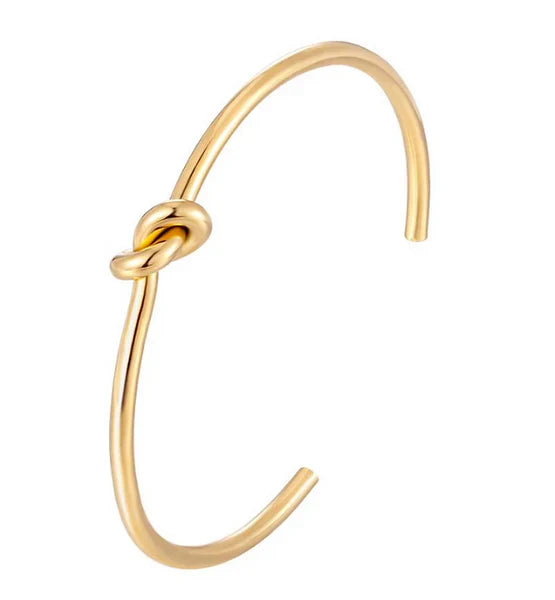 Elevate your style with our Knot cuff, a perfect blend of elegance and minimalism. Crafted from 18K gold-plated stainless steel, this piece is designed to be tarnish-resistant, waterproof, and hypoallergenic, ensuring lasting beauty and comfort. Whether you're dressing up for a special occasion or adding a subtle touch of sophistication to your everyday look,Knot cuff is a timeless essential that complements any outfit effortlessly.