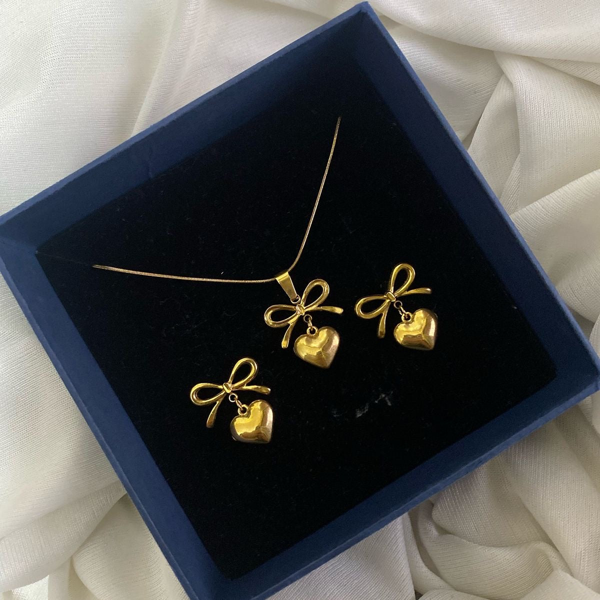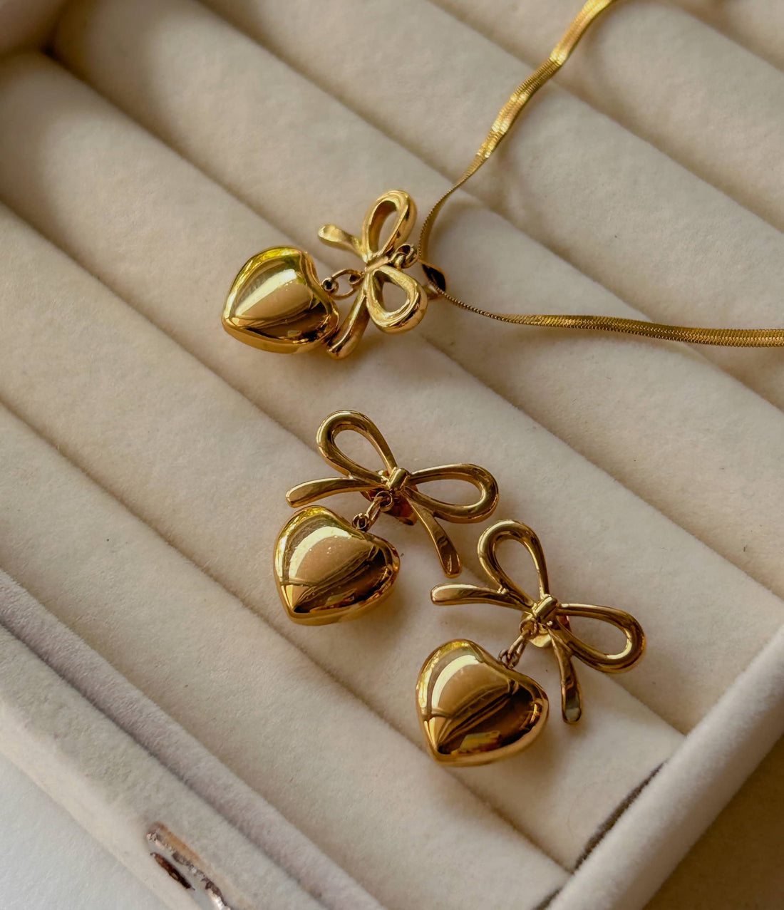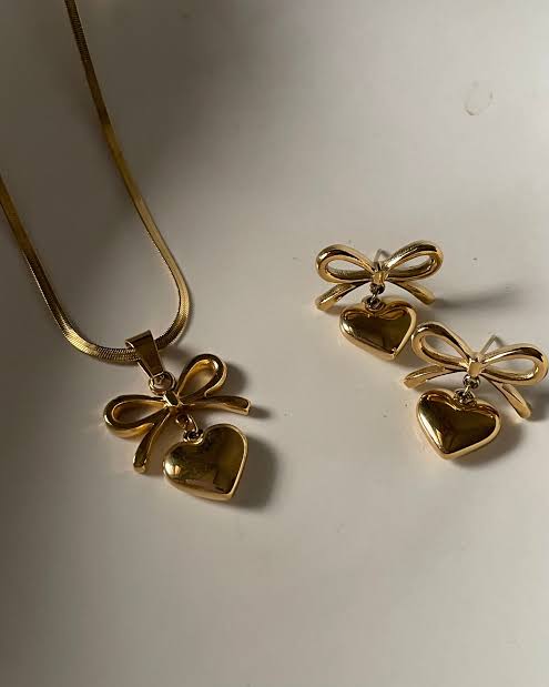 Elevate your style with our Lustre set, a perfect blend of elegance and minimalism. Crafted from 18K gold-plated stainless steel, this piece is designed to be tarnish-resistant, waterproof, and hypoallergenic, ensuring lasting beauty and comfort. Whether you're dressing up for a special occasion or adding a subtle touch of sophistication to your everyday look,Lustre set is a timeless essential that complements any outfit effortlessly.