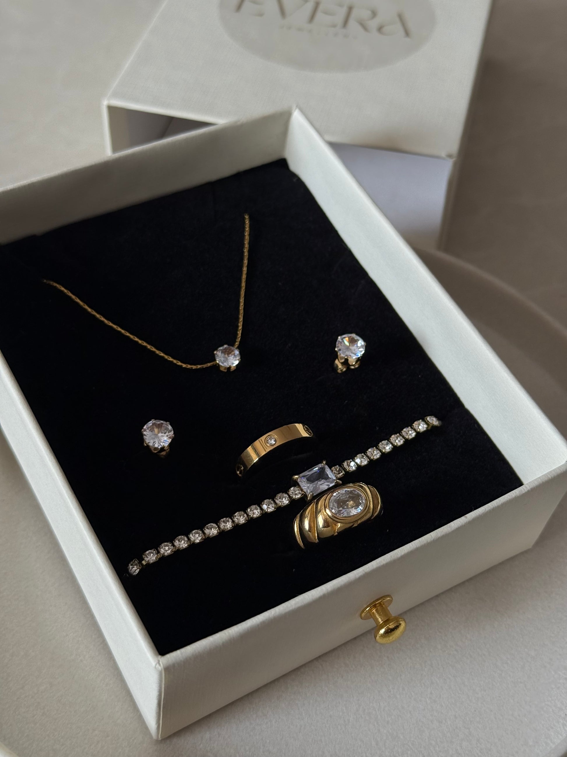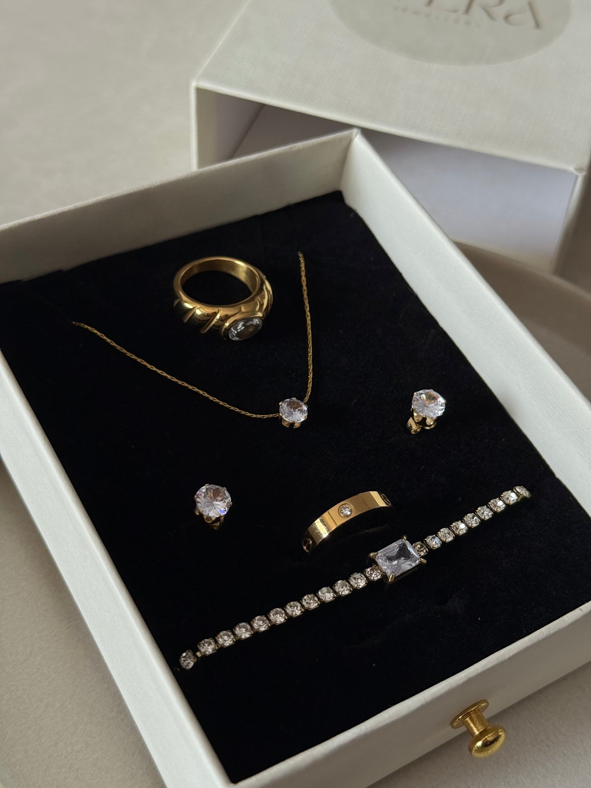 Elevate your style with our The promise set, a perfect blend of elegance and minimalism. Crafted from 18K gold-plated stainless steel, this piece is designed to be tarnish-resistant, waterproof, and hypoallergenic, ensuring lasting beauty and comfort. Whether you're dressing up for a special occasion or adding a subtle touch of sophistication to your everyday look,The promise set is a timeless essential that complements any outfit effortlessly.