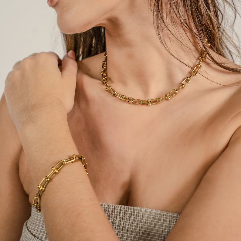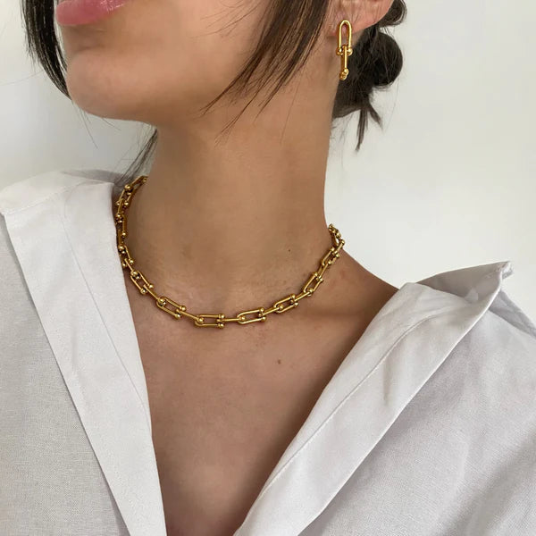 Elevate your style with our Velora set, a perfect blend of elegance and minimalism. Crafted from 18K gold-plated stainless steel, this piece is designed to be tarnish-resistant, waterproof, and hypoallergenic, ensuring lasting beauty and comfort. Whether you're dressing up for a special occasion or adding a subtle touch of sophistication to your everyday look,Velora set is a timeless essential that complements any outfit effortlessly.